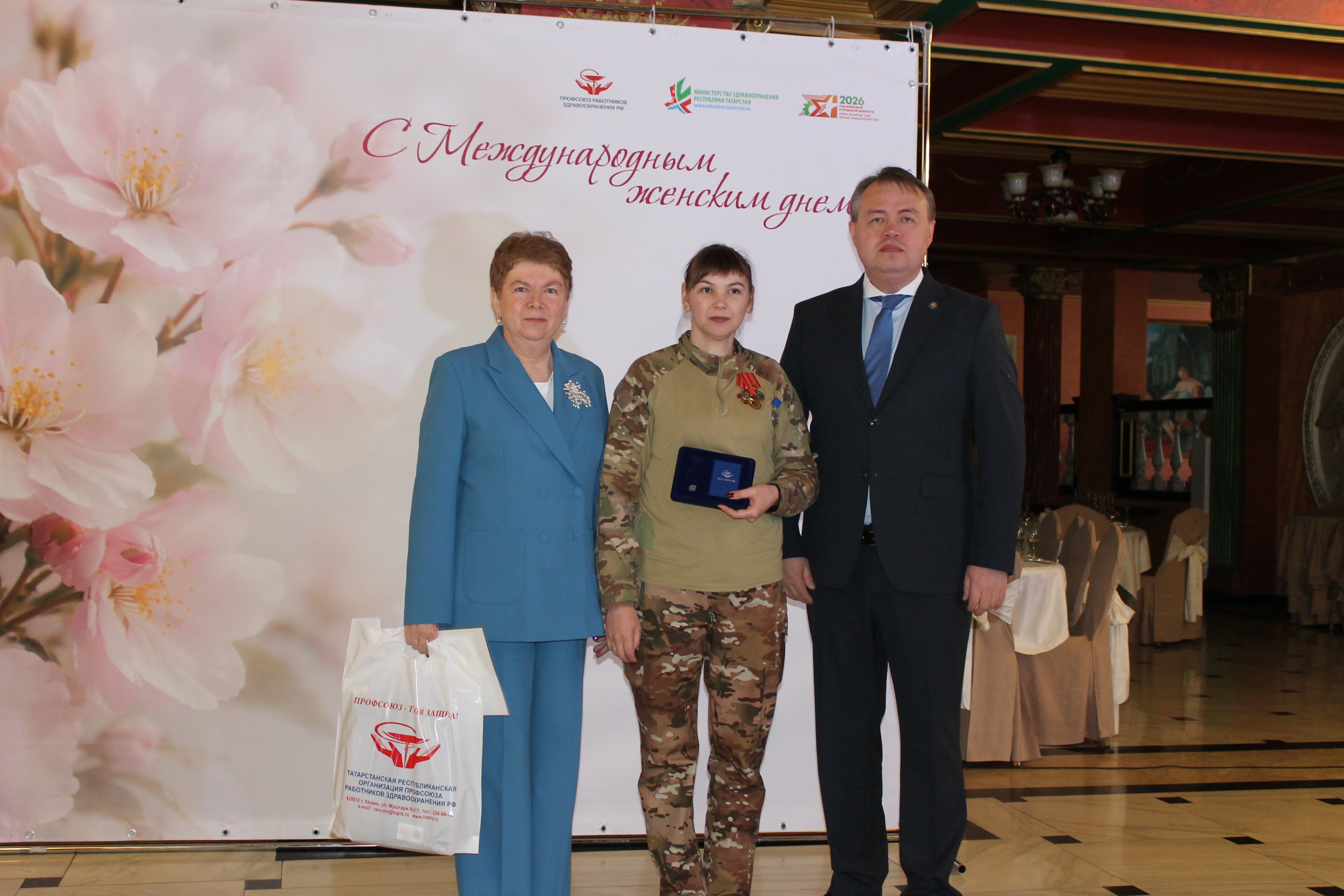 В завершение мероприятия участницам были вручены букеты весенних цветов и подарены памятные подарки. А нашим доблестным медикам-участникам СВО в торжественной обстановке со слезами на глазах были вручены медали Профсоюза работников здравоохранения РФ «За самоотверженность и профессионализм».
