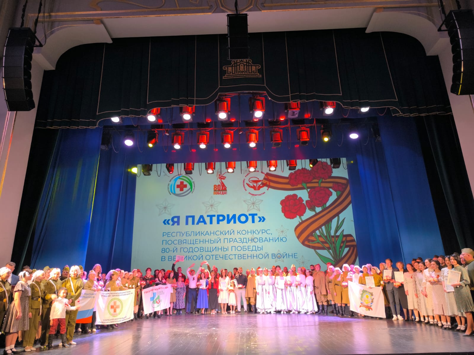 Зал Башкирского академического театра драмы 17 мая был заполнен медиками, на сцене тоже медики – они танцевали, пели, читали стихи о войне. 37 номеров почти 200 артистов-медиков вышли на сцену. Таким грандиозным гала-концертом завершился Республиканский творческий конкурс «Я -Патриот», проводимый Министерством здравоохранения Башкортостана при поддержке Профсоюза работников здравоохранения РБ.
