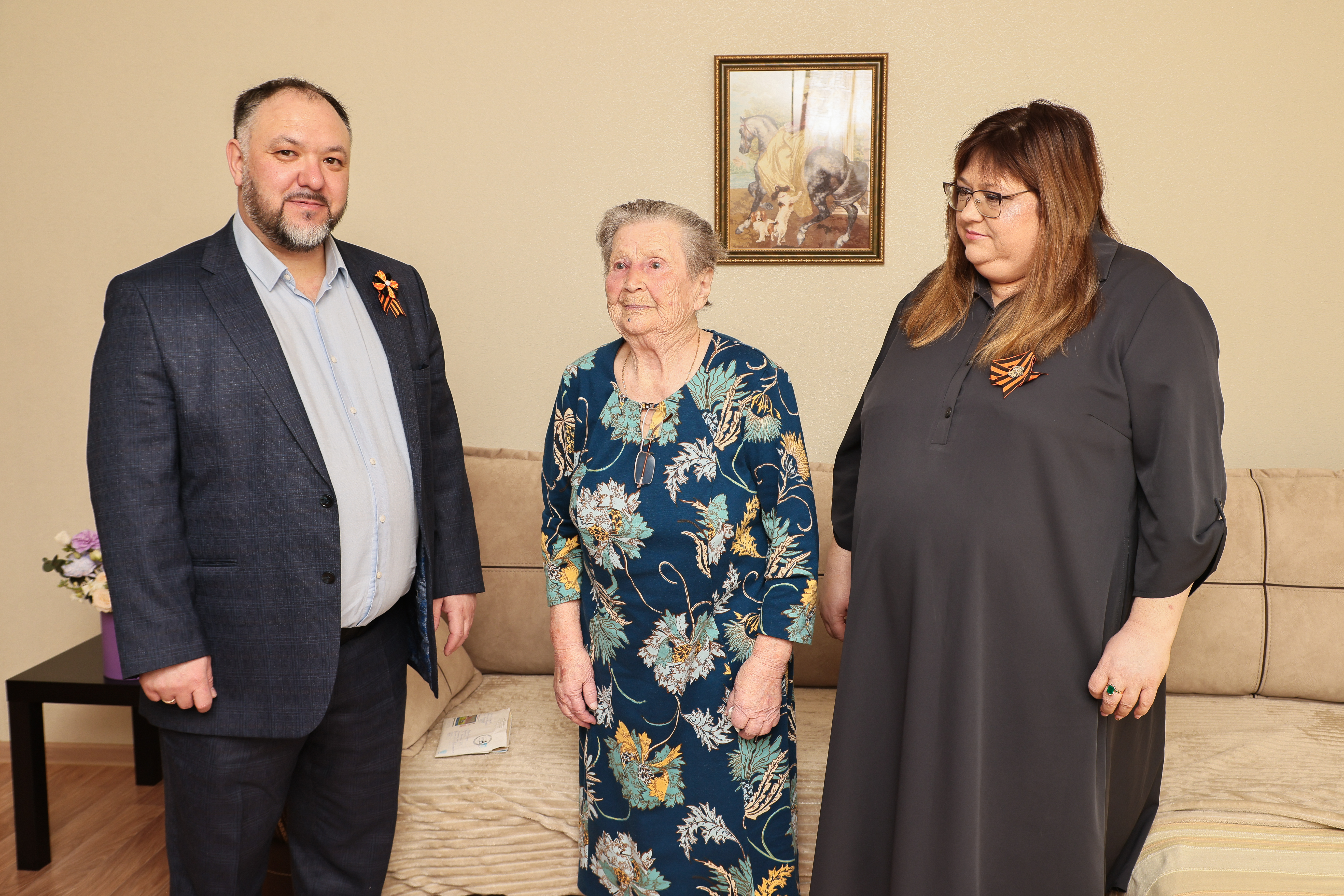 10 мая Председатель Региональной организации Профсоюза работников здравоохранения ХМАО - Югры Оксана Меньшикова совместно с главным врачом БУ "Ханты-Мансийская районная больница" Маратом Сулеймановым были в гостях, чтобы поздравить с 80-летним Юбилеем Победы в Великой Отечественной войне Лагутову Лидию Васильевну - Ветерана Великой Отечественной войны и труженицу тыла